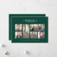 This six-photo holiday card features a prominent monogram surrounded by rustic festive branches and the year and a place for a customizable greeting. The green background color is festive and classic but can be changed by clicking "customize."