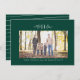 This horizontal one-photo holiday card features a prominent monogram surrounded by rustic festive branches and the year and a place for a customisable greeting. The back features a striped green background. The colour can be changed by clicking "customise." Coordinating address stickers available in the Rustic Monogram collection by Lea Delaveris Design.