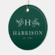 Rustic monogram hunter green newlywed photo ceramic ornament