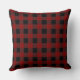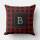 Rustic Monogram Red Black Buffalo Check Plaid Cushion