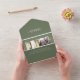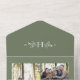 Send unique holiday greetings with this four-photo design featuring a rustic monogram along with a detachable, frameable keepsake photo! Three photos make up the main part of the card with a stylish sage green background, and the back of the perforated image has plenty of room for custom text about the year or any special greeting you'd like to include.