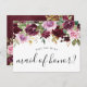 Invite your friends and family to be your maid of honour with our elegant Rustic Moody Floral "Will You Be My Maid of Honour?" card. The maid of honour card features a top border of watercolor flowers and greenery in shades of burgundy, purple, blush pink & green. Add a personal message on the back. Designed to coordinate with our Rustic Moody Floral wedding collection.