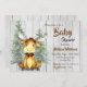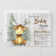 Too cute Baby Moose Shower Invitation features a cute moose with sitting in a pine tree forest. A light wood background sets the rustic look for this fun shower invitation. Great for a boy or girl!
