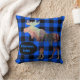 Rustic Moose Blue Plaid Add Name Throw Pillow