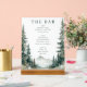 This is a rustic style image featuring an elegant bar menu set against a serene mountain backdrop. The composition includes tall, lush pine trees and delicate wildflowers at the base of snow-capped mountains, creating a tranquil and inviting atmosphere. The menu lists various beverages including beer, wine, and spirits in a clean, organised manner. It feels like stepping into a cosy alpine lodge where you can enjoy a refreshing drink while taking in nature's beauty. Perfect for outdoor enthusiasts or anyone looking to add a touch of wilderness charm to their decor.