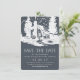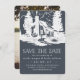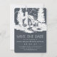 Planning a wedding in the mountains? Announce your date with our rustic chic save the date cards in a smoky colour palette of crisp white and an alluring shade of dark charcoal grey that has a touch of elegant navy blue. Design features an illustration of a rustic country cabin in the woods, surrounded by tall trees, with "save the date" and your wedding details beneath. Custom text templates provide space for your names, wedding date, location and wedding website. Add an engagement photo to the back of the card if desired.