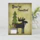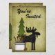 Personalised Rustic Mountain Country Silhouette Moose Birthday Party Invitation with Green Background.