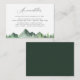 Rustic watercolor forest trees and mountain range scene with trendy dark green colour backing, wedding accommodations cards.