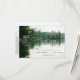 This rustic wedding RSVP card with heron silhouette features a beautiful rustic lakeside scene with distant evergreens, trees and rock structures reflecting on calm, slightly rippled water under an overcast sky | this image is my own photograph taken while kayaking, enhanced with a subtle digital watercolor effect for a painterly feel | the back of the card portrays a Great Blue Heron silhouetted in tall marsh grass, created from elements of my own photographs - part of the Mountain Lake Rustic Wedding Collection by katz_d_zynes >> https://www.zazzle.com/collections/119499271518309609