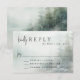 Showing off the beautiful of nature in a mountain lake setting with misty pine trees and greenery, this wedding RSVP card has contemporary nature-inspired style. It sets the perfect tone for your wedding in a scenic mountain lake or outdoor destination. Customise with your required response date.