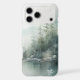A nature-inspired phone case with a mountain lake watercolor scene that is calm and serene. For those who love the beauty of nature and mountain lake life, this case has a text template to personalize with your monogram initials. A gender neutral design for all.