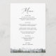 Let your guests know what's on the menu with this elegant 5x7 menu card, featuring watercolor mountains and pine trees.