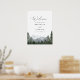 Welcome friends and family to your wedding ceremony with this elegant sign, featuring watercolor mountains and pine trees.