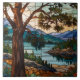 Rustic mountain range landscape stain glass ceramic tile
