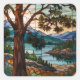 Rustic mountain range landscape stain glass square sticker