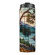 Rustic mountain range landscape stain glass thermal tumbler