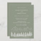Rustic Mountain Sketch Pine Sage Green Wedding Invitation