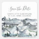 Rustic Mountain Watercolor Photo Save the Date Square Sticker