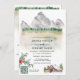 This winter Wyoming destination wedding invitation suite beautifully captures the serene and majestic essence of Jackson Hole and the Teton Mountains through delicate hand-painted watercolor illustrations. The front of the invitation showcases a stunning depiction of the iconic mountain range, framed by a soft green pine forest, evoking the natural beauty of Wyoming. At the bottom, a cosy log cabin adds a rustic charm, making it perfect for couples who love the outdoors. The back includes essential details surrounded by more gentle watercolor touches, maintaining the cohesive, elegant aesthetic. Ideal for a rustic or mountain-themed wedding, this invitation suite seamlessly blends nature-inspired art with a touch of sophistication. Adding a qr code to scan for more details!
