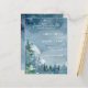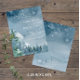Theme Parties' dark dusty blue budget-friendly save the date card (4.25 in. x 5.6 in.) design features watercolor trees and mountains set on a dark blue watercolor background. The typography pairs traditional lettering with modern hand-lettered text. #SaveTheDate #DustyBlueWedding #BudgetWedding