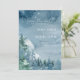 Theme Parties' dark dusty blue save the date design features watercolor trees and mountains set on a dark blue watercolor background. The typography pairs traditional lettering with modern hand-lettered text. #SaveTheDate #DustyBlueWedding
