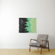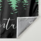 Rustic forest trees silhouette and mountains wall tapestry with the word "adventure" in white script.
