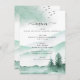 Rustic Mountain Forest Watercolor Spring Wedding Menu on white background - includes beautiful and elegant script typography with modern botanical outdoor trees, birds and mountains for the special Wedding day celebration.