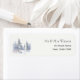 Add a refined, nature-inspired touch to your wedding stationery with this rustic winter return address label. Featuring a delicate watercolor scene of snow-covered pine trees and distant mountains, it evokes the peaceful charm of a winter forest. Perfect for sealing envelopes with style, this label complements rustic, woodland, and outdoor wedding themes beautifully.