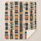 Earthy geometric pattern blanket inspired by tribal mudcloth textiles, featuring hand-painted rectangles, diamonds, and triangles in charcoal black and terracotta on a textured beige background. A warm boho design ideal for rustic décor lovers, artisan style fans, and anyone drawn to earthy geometric aesthetics.