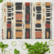 Earthy geometric pattern kitchen towel inspired by tribal mudcloth textiles, featuring hand-painted rectangles, diamonds, and triangles in charcoal black and terracotta on a textured beige background. A warm boho design ideal for rustic décor lovers, artisan style fans, and anyone drawn to earthy geometric aesthetics.