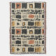 Earthy geometric pattern blanket inspired by tribal mudcloth textiles, featuring hand-painted rectangles, diamonds, and triangles in charcoal black and terracotta on a textured beige background. A warm boho design ideal for rustic décor lovers, artisan style fans, and anyone drawn to earthy geometric aesthetics.