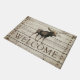 Rustic wood walking moose welcome mat for cabin, cottage, camper, bed and breakfast, tiny house nomad. Earthy rustic wood pattern with simulated nail edging design, giving this style an authentic natural nail edged wood barrel vibe.