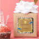 Make a lasting impression with this elegant and modern product label design featuring a brown wood grain and natural tree bark with a shimmery golden frame and cute blue butterflies.