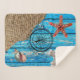 Rustic Nautical Blue Wood Burlap Starfish Sherpa Blanket