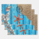 Rustic Nautical Blue Wood Burlap Starfish Wrapping Paper Sheet