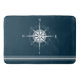Stylish and fun, this bath mat is perfect for your home or yacht bathroom. The design features a white rustic compass with three white stripes. Great gift for any sea-loving person you know. Great for sea captains and the like!