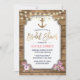 Rustic Nautical Gold Anchor String Lights Wooden Bridal Shower Invitations.