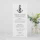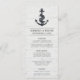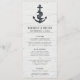 A chalkboard style anchor on an off-white wood like background. A ribbon on the anchor reads "menu." All text can be easily customised. Perfect for a nautical themed wedding, especially if going with the rustic or vintage look.