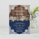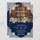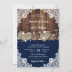 Rustic Navy Blue Barn Wood Burlap Lace Wedding Invitation
