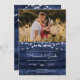 Rustic Navy Blue Barn Wood String Lights Photo Invitation