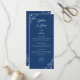 This lovely wedding reception menu card features a lovely navy blue background with hand-drawn wildflowers and elegant typography in white. Together these elements create an rustic yet elegant wedding menu that would be perfect for a romantic wedding any time of the year. This design coordinates with our Rustic Wildflowers wedding suite.