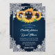 Rustic Navy Blue Burlap Lace Sunflower Wedding Invitation