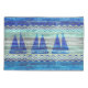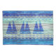 Ocean nautical themed coastal decor of three navy blue sailboats on old weathered wood. Nautical designs for coastal living or beach décor. Perfect for a seaside cottage or a beach house. Set in the centre of a naval blue graphic of ocean waves.