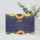 Rustic Navy Blue Gold Lace Sunflower Wedding RSVP Card