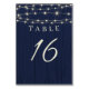 Rustic Navy Blue String Lights Wedding Table Number