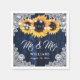 Rustic Navy Blue Sunflower Lace Mr and Mrs Wedding Napkin