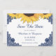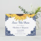 Rustic navy blue and sunflower wedding save the date cards. Matching items available.