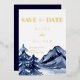 Rustic Navy Blue Trees Mountain Save The Date