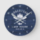 Rustic Navy Blue Wood Family Lake House Trees Round Clock