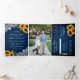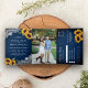 Rustic Navy Blue Wood Lace Sunflower Wedding Photo Tri-Fold Invitation